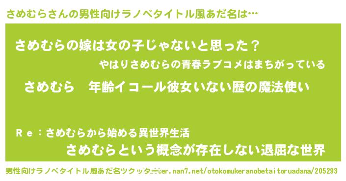 | ヘコむあだ名 | 『さめっ子』『さめむら(爆)』『豆乳』 |