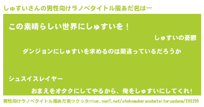 | 胡散臭い通販商品みたいなあだ名 | 『信頼と実績のネックレス…その名も「しゅすい」』 |