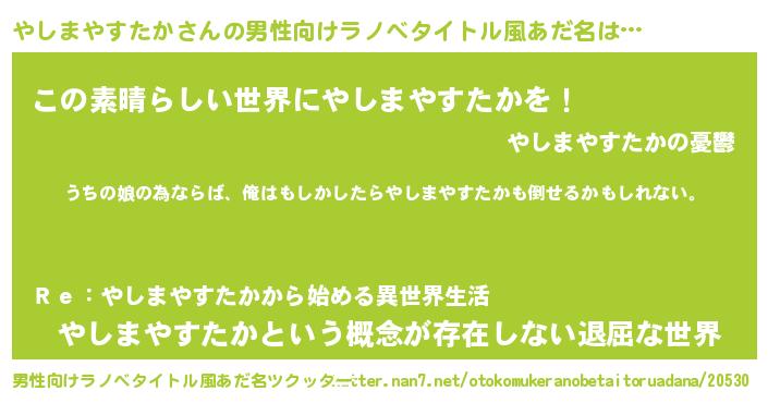 | 意味不明あだ名 | 『やしまやすたかフォーエバー』 |