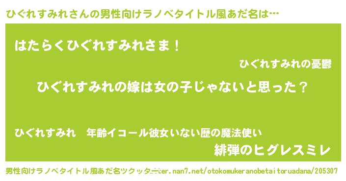 | 欧米人風あだ名 | 『ウサインひぐれすみれ』 |
