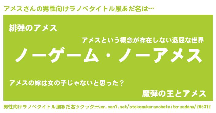 | 女子向けラノベタイトル風あだ名 | 『アメス恋絵巻』『アメス様がみてる』 |