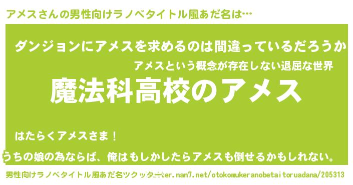 | ヒーロー風カッコイイあだ名 | 『サイバー戦士アメス』『魔戒騎士アメ』 |