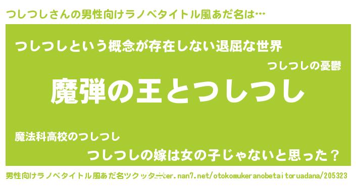 | 意味不明あだ名 | 『住所不定無職つしつし(41歳)』 |