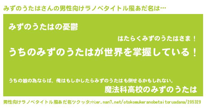 | 胡散臭い通販商品みたいなあだ名 | 『億万長者になれる霊験あらたかなお札…その名も「みずのうたは」』 |