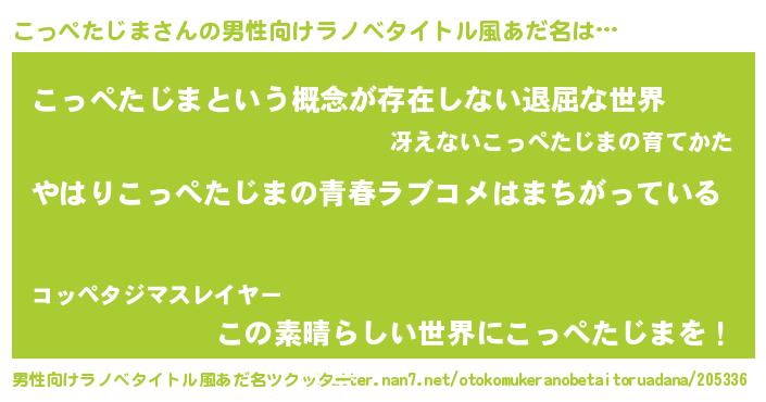 | 女子向けラノベタイトル風あだ名 | 『こっぺたじまの雑貨屋さん』 |