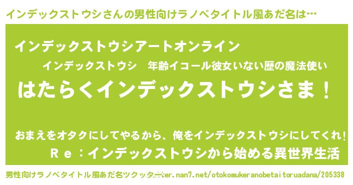 | 胡散臭い通販商品みたいなあだ名 | 『モテモテ間違いなし水晶球…その名も「インデックストウシ」』 |