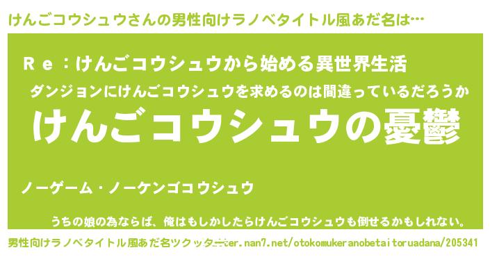 | 女子向けラノベタイトル風あだ名 | 『(仮)けんごコウシュウのやんごとなき事情』 |
