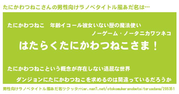 | 胡散臭い通販商品みたいなあだ名 | 『信頼と実績のネックレス…その名も「たにかわつねこ」』 |