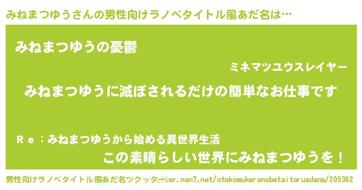 | 胡散臭い通販商品みたいなあだ名 | 『モテモテ間違いなし水晶球…その名も「みねまつゆう」』 |