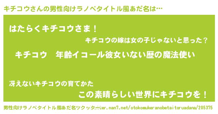 | 女子向けラノベタイトル風あだ名 | 『キチコウの玉の輿計画!』 |