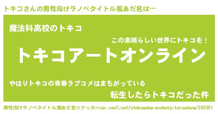 | ヘコむあだ名 | 『トキふぇ~』『牛乳』『トキコ(笑)』 |
