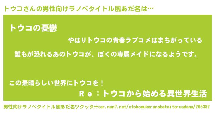 | ヘコむあだ名 | 『トウコ(笑)』『トウにー』『トウお』 |