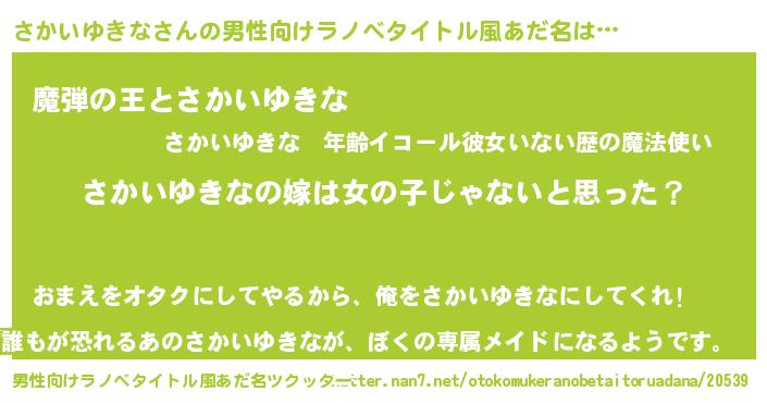 | 女子向けラノベタイトル風あだ名 | 『さかいゆきな様がみてる』 |