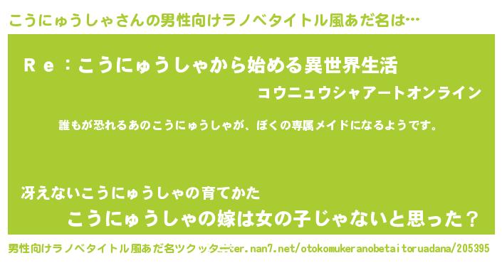 | 女子向けラノベタイトル風あだ名 | 『異世界でカフェこうにゅうしゃを開店しました。』 |