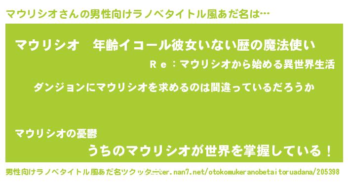 | 女子向けラノベタイトル風あだ名 | 『マウリシオの卵を拾いまして』 |