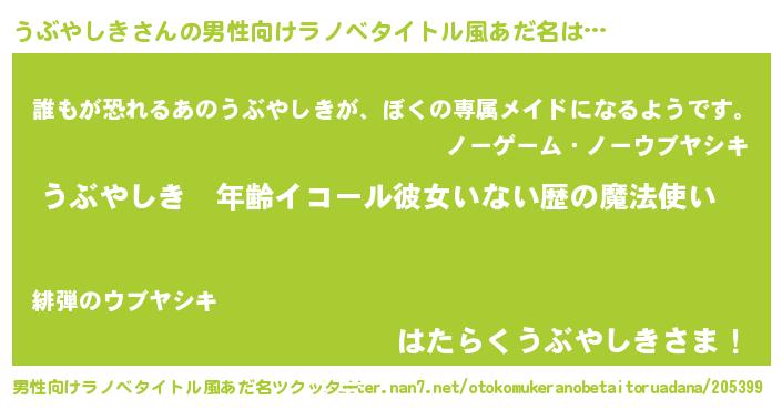 | ヘコむあだ名 | 『うぶやしき(笑)』『うぶにゅー』 |