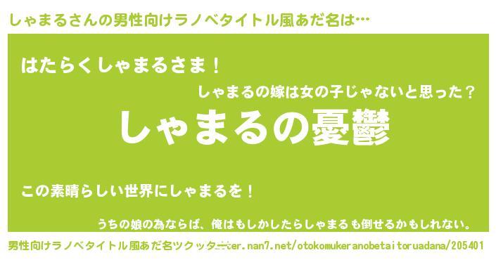 | 女子向けラノベタイトル風あだ名 | 『(仮)しゃまるのやんごとなき事情』 |