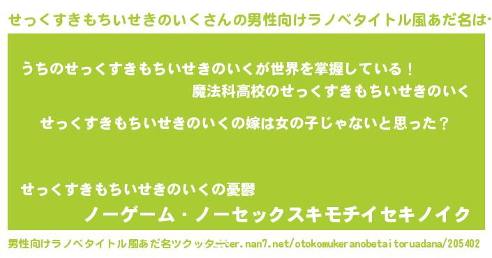 | 女子向けラノベタイトル風あだ名 | 『せっくすきもちいせきのいく様がみてる』 |