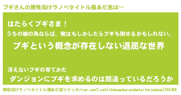 | 胡散臭い通販商品みたいなあだ名 | 『絶対に幸福をもたらす招き猫…その名も「ブギ」』 |