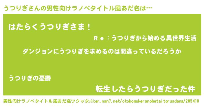 | 女子向けラノベタイトル風あだ名 | 『うつりぎは平凡を望む』『闇のうつりぎ』 |