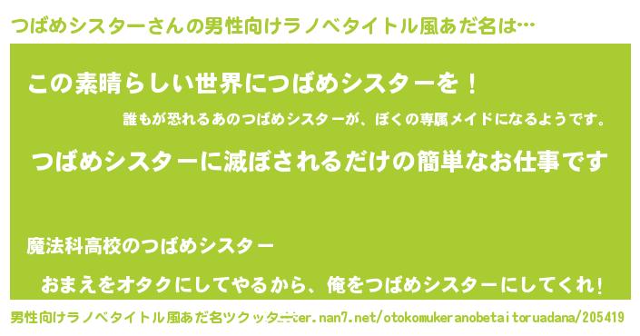 | 意味不明あだ名 | 『住所不定無職つばめシスター(4歳)』 |