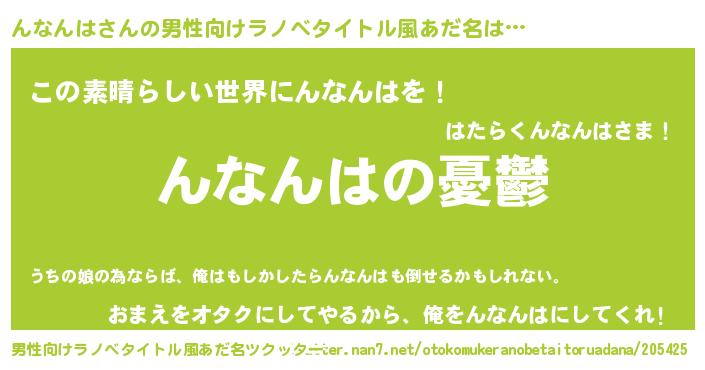 | 女子向けラノベタイトル風あだ名 | 『(仮)んなんはのやんごとなき事情』 |