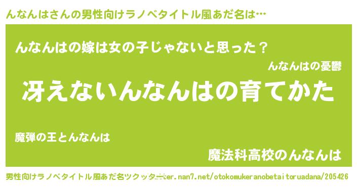 | ヒーロー風カッコイイあだ名 | 『銀牙騎士ンナ』『最強戦士ンナンハ』 |