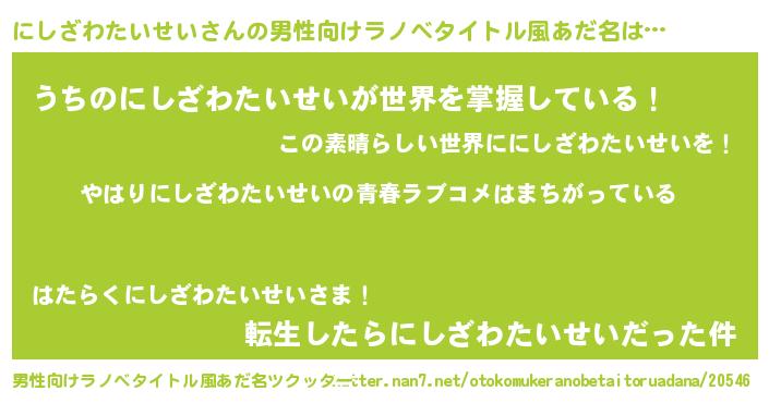| 女子向けラノベタイトル風あだ名 | 『にしざわたいせいの雑貨屋さん』 |