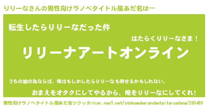 | 胡散臭い通販商品みたいなあだ名 | 『億万長者になれるブレスレット…その名も「りりーな」』 |