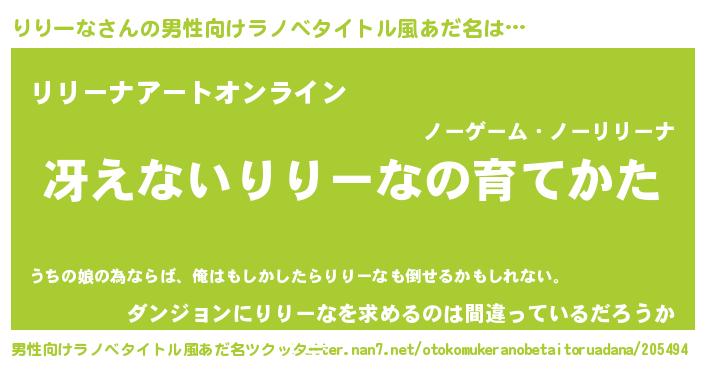 | 女子向けラノベタイトル風あだ名 | 『シンデレラりりーな家の靴箱館』 |