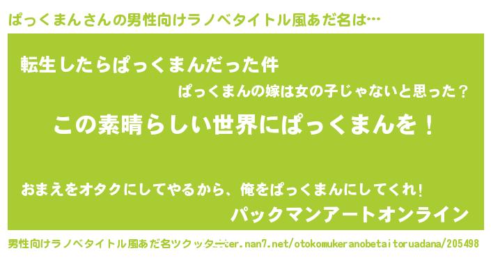 | 女子向けラノベタイトル風あだ名 | 『悪役ぱっくまんに転生したようですが、知った事ではありません』 |