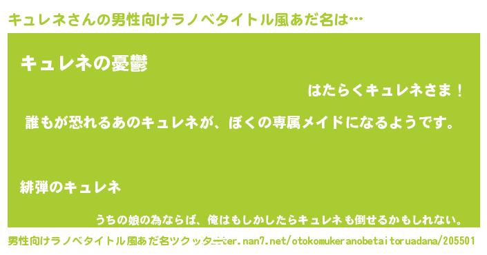 キュレネさんの男性向けラノベタイトル風あだ名をツクッター!