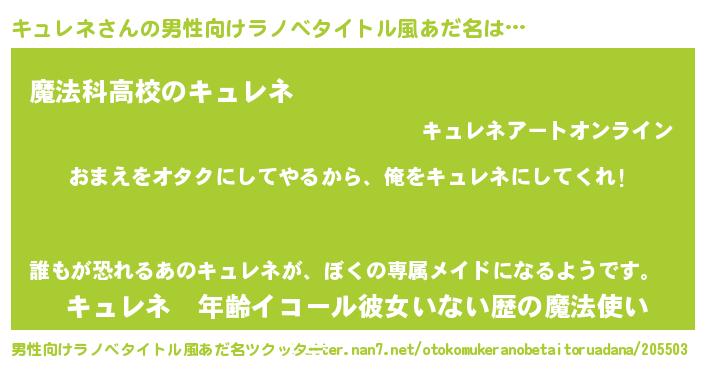 | ヒーロー風カッコイイあだ名 | 『正義の使者キュレネ』『ネオキュレネ』 |