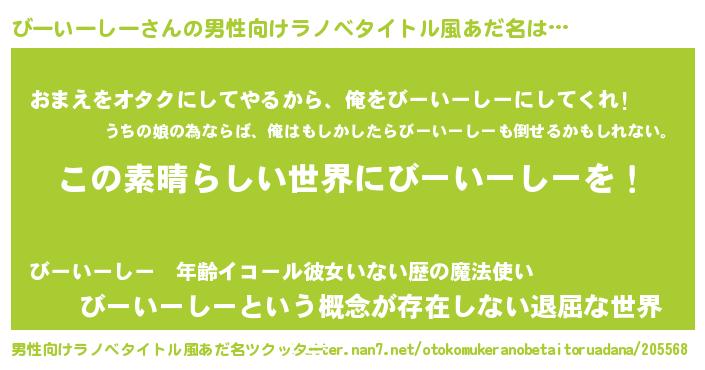 びーいーしーさんの男性向けラノベタイトル風あだ名をツクッター!