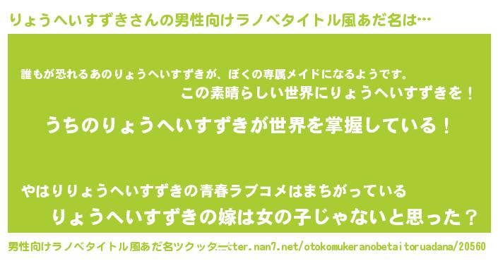 | 女子向けラノベタイトル風あだ名 | 『男装りょうへいすずきの憂鬱な任務』 |