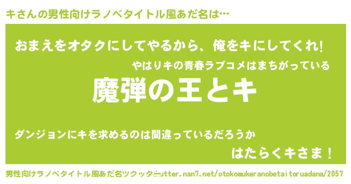 | 女子向けラノベタイトル風あだ名 | 『キが死なない童話 林檎のキの診療簿』 |