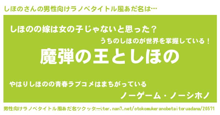 | 女子向けラノベタイトル風あだ名 | 『しほのが死なない童話 林檎のしほのの診療簿』 |