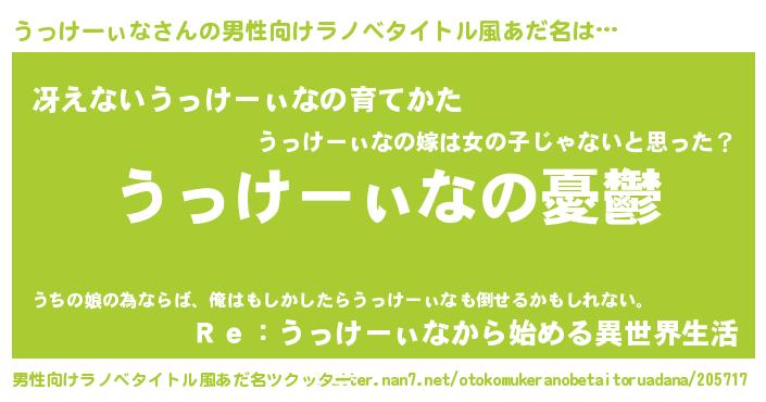 | 胡散臭い通販商品みたいなあだ名 | 『必ず成功するブレスレット…その名も「うっけーぃな」』 |