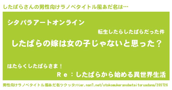 | 女子向けラノベタイトル風あだ名 | 『したぱらの卵を拾いまして』 |