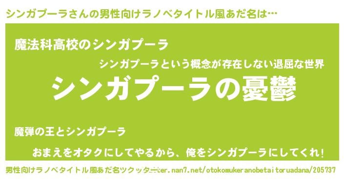 | 胡散臭い通販商品みたいなあだ名 | 『モテモテ間違いなし水晶球…その名も「シンガプーラ」』 |