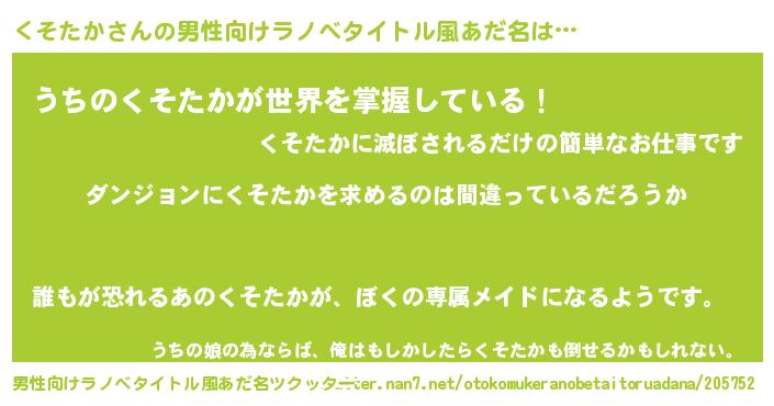 | 女子向けラノベタイトル風あだ名 | 『くそたかは平凡を望む』 |