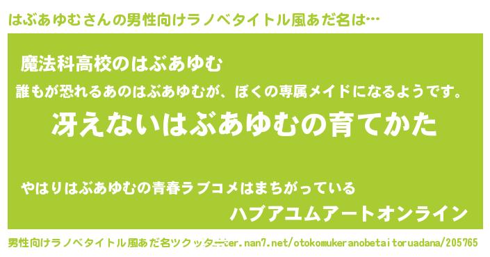 | 意味不明あだ名 | 『自称はぶあゆむ』『ペロリンはぶあゆむ』 |