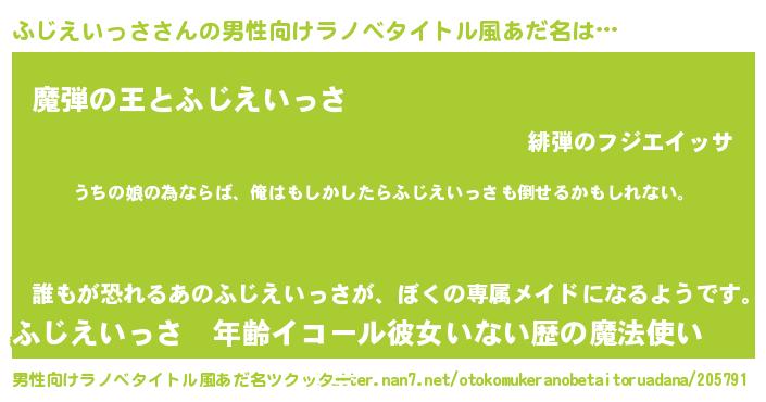 | 女子向けラノベタイトル風あだ名 | 『ふじえいっさの婚約者』 |