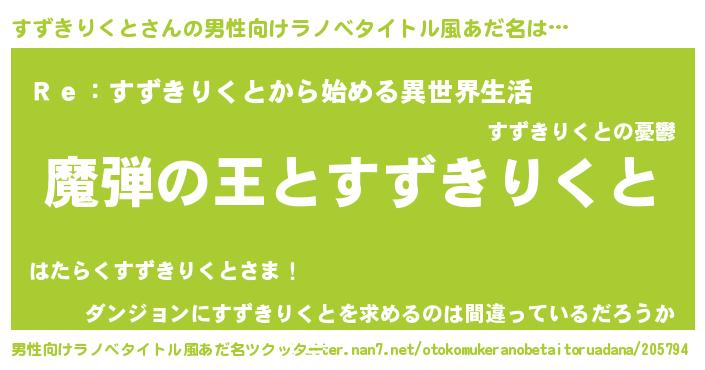 | 意味不明あだ名 | 『住所不定無職すずきりくと(98歳)』 |