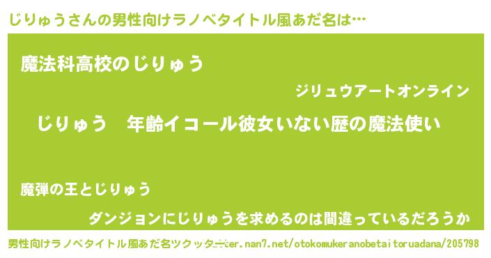| 女子向けラノベタイトル風あだ名 | 『じりゅうの玉の輿計画!』 |
