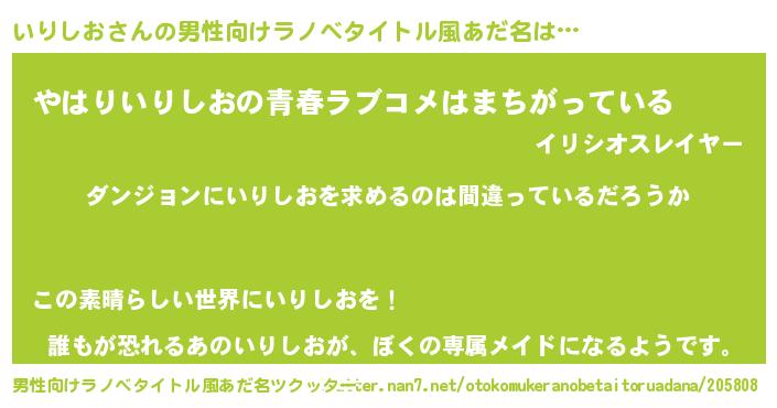 | 意味不明あだ名 | 『とにかく怪しいいりしお』 |