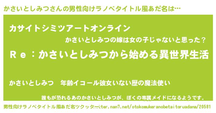 | 意味不明あだ名 | 『自称かさいとしみつ』 |