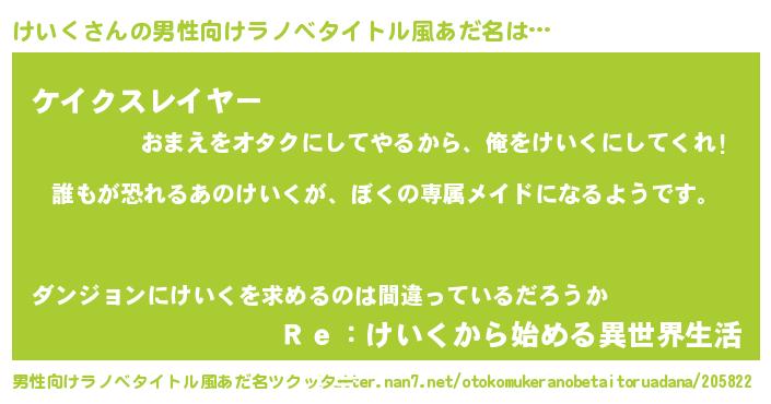 | ヘコむあだ名 | 『けいく(小並感)』『けいっぺ』 |