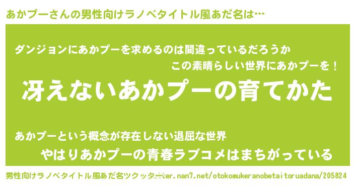 | 意味不明あだ名 | 『とにかく怪しいあかプー』 |