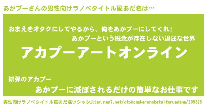 | 胡散臭い通販商品みたいなあだ名 | 『億万長者になれる霊験あらたかなお札…その名も「あかプー」』 |